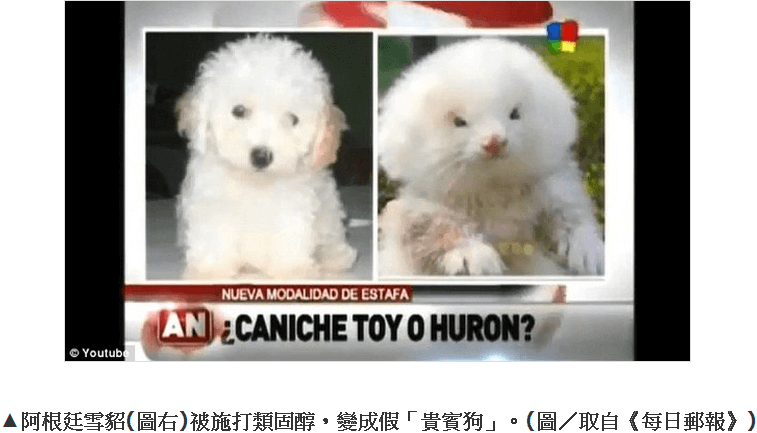 阿根廷的黑市日前出現一種奇怪的寵物,一位男子在市集買了兩隻貴賓狗,拿給獸醫檢查時才發現原來他買的「狗」根本就不是貴賓狗,而是長期被施打類固醇的變形雪貂。