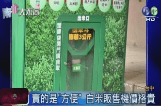 台中有業者看準小家庭商機,和碾米廠合作,把白米裝進了自動販賣機裡