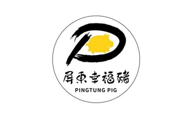 屏東幸福豬標章標章以最簡單線條為設計出發點,英文P字中有一隻幸福、優質的豬,意象取自屏東的英文 Pingtung 和豬的英文 Pig 都是以P字開頭,消費者一眼就可辨別來自屏東、健康、自然、饗安心的幸福豬。