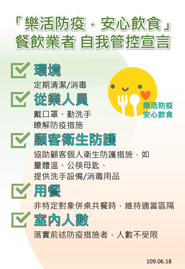 澎湖縣衛生局:你我一同響應「樂活防疫.安心飲食 」,創造防疫樂活新態度! 2020-06-23 作者: iQC 隨著國內疫情趨緩,為了使民眾能逐步回歸正常生活,並同時兼顧防疫與生活品質,衛生福利部食品藥物管理署(下稱食 … 閱讀全文