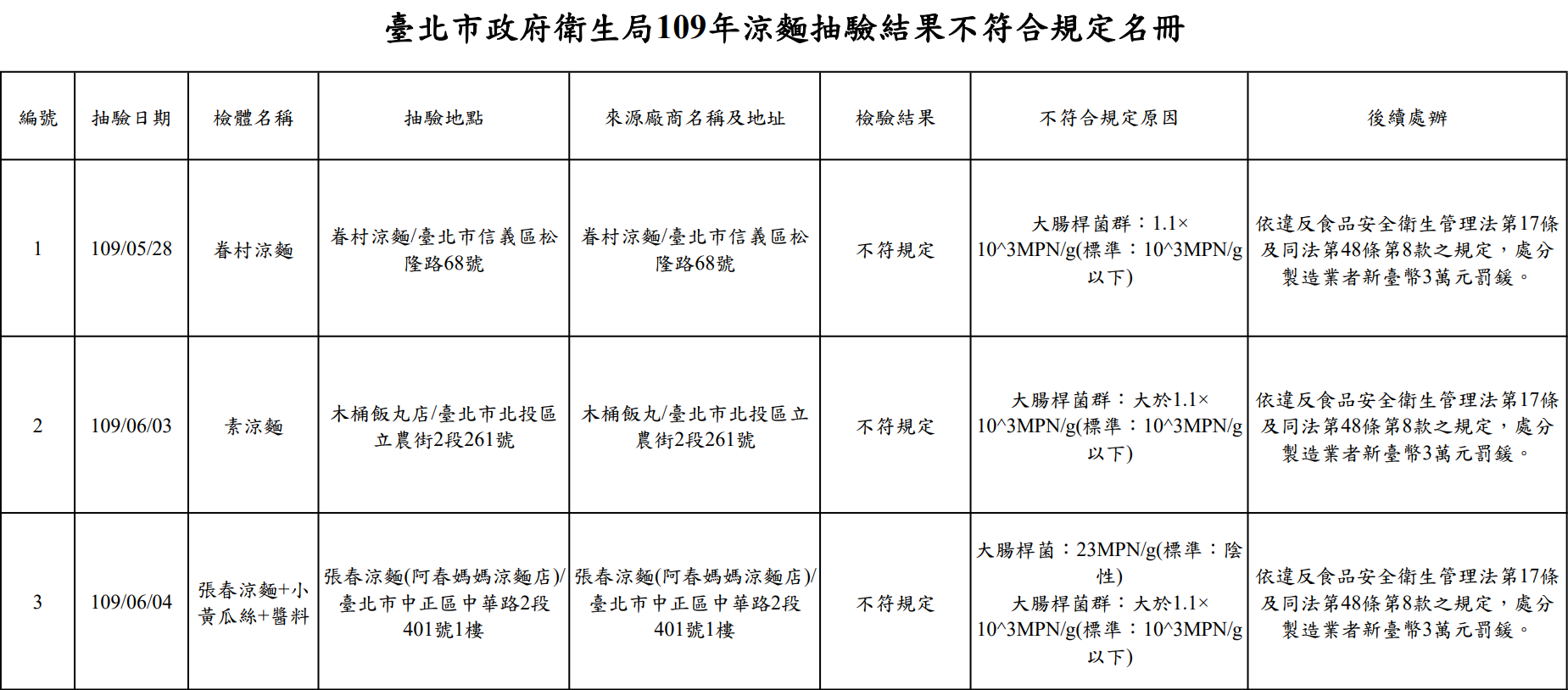 臺北市政府衛生局公布109年涼麵食品抽驗結果 2020-07-132020-07-07 作者: iQC 臺北市政府衛生局為維護消費者食用涼麵衛生安全,自今年5月中旬針對連鎖超商、賣場、小吃店及涼麵販售商等進行涼麵食 … 閱讀全文