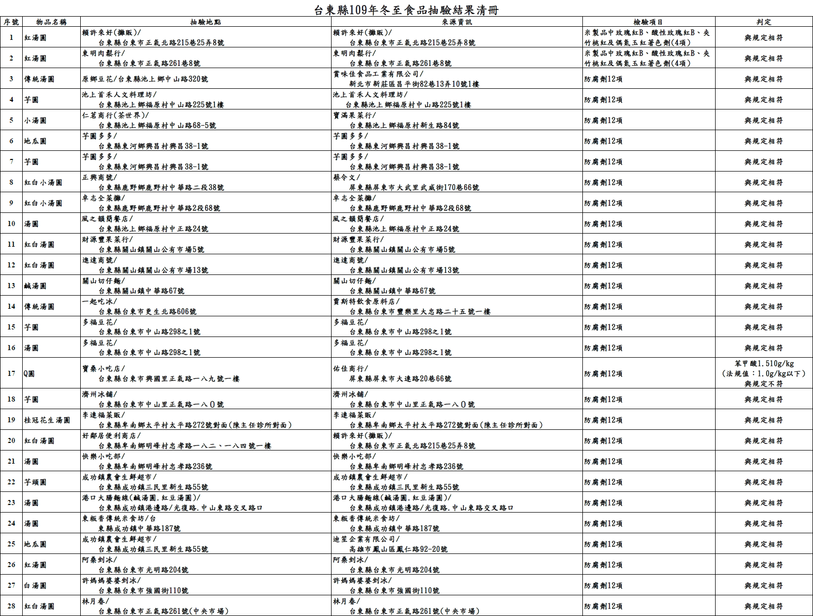 臺東縣冬至食品抽驗28件,其中1件不合格 2020-12-22 作者: iQC 冬至將至,臺東縣衛生局為維護民眾食用湯圓之衛生安全,近日針對市售湯圓類食品進行抽驗,檢驗項目為防腐劑以及規定外 … 閱讀全文